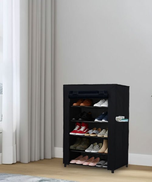 Urban Choice 6 Tier Shoe Rack with Dustproof Cover – Space Saving Footwear Organizer for Entryway, Bedroom & Closet (Black)