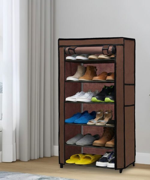 Urban Choice 6 Tier Shoe Rack with Dustproof Cover – Space Saving Footwear Organizer for Entryway, Bedroom & Closet (Brown)