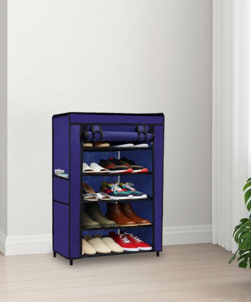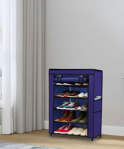 Urban Choice 5 Tier Shoe Rack with Dustproof Cover – Space Saving Footwear Organizer for Entryway, Bedroom & Closet (Blue)