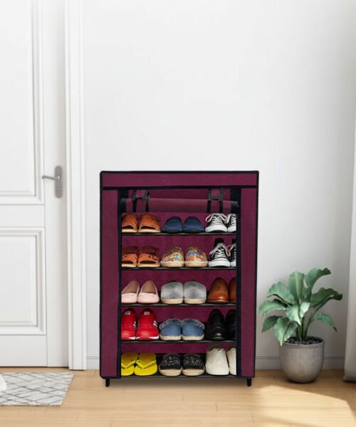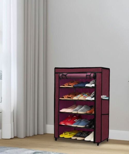 Urban Choice 5 Tier Shoe Rack with Dustproof Cover – Space Saving Footwear Organizer for Entryway, Bedroom & Closet (Maroon)