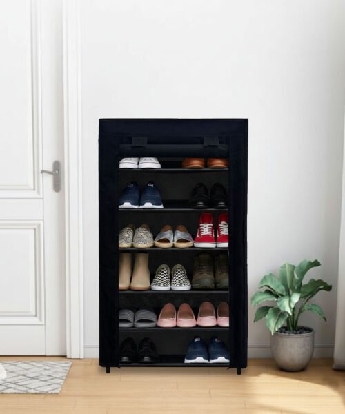 Urban Choice 5 Tier Shoe Rack with Dustproof Cover – Space Saving Footwear Organizer for Entryway, Bedroom & Closet (Black)