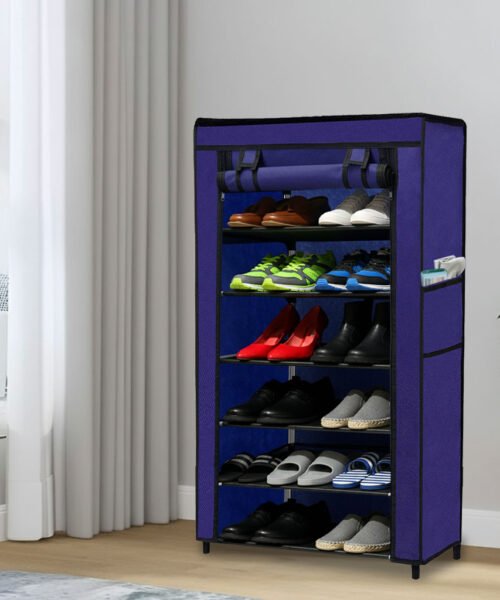 Urban Choice 6 Tier Shoe Rack with Dustproof Cover – Space Saving Footwear Organizer for Entryway, Bedroom & Closet (Blue)