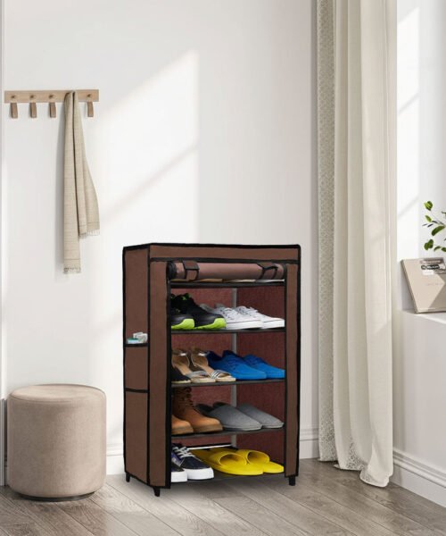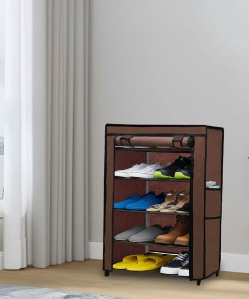 Urban Choice 5 Tier Shoe Rack with Dustproof Cover – Space Saving Footwear Organizer for Entryway, Bedroom & Closet (Brown)