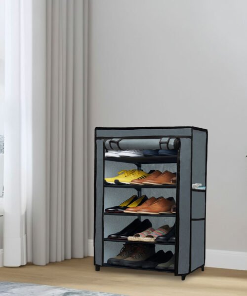 Urban Choice 5 Tier Shoe Rack with Dustproof Cover – Space Saving Footwear Organizer for Entryway, Bedroom & Closet (Grey)