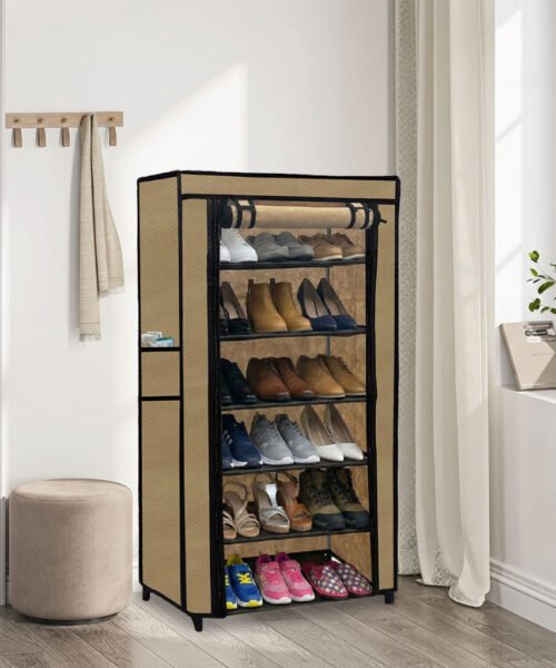 Urban Choice 6 Tier Shoe Rack with Dustproof Cover – Space Saving Footwear Organizer for Entryway, Bedroom & Closet (Beige)