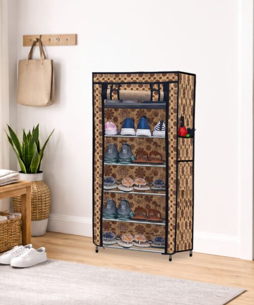 Urban Choice 5 Tier Shoe Rack with Dustproof Cover – Space Saving Footwear Organizer for Entryway, Bedroom & Closet (Brown)