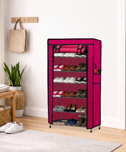Urban Choice 5 Tier Shoe Rack with Dustproof Cover – Space Saving Footwear Organizer for Entryway, Bedroom & Closet (Maroon)