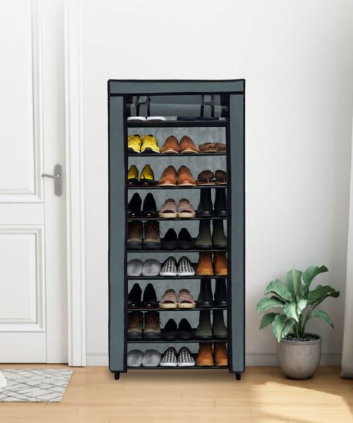 Urban Choice 9 Tier Shoe Rack with Dustproof Cover – Space Saving Footwear Organizer for Entryway, Bedroom & Closet (Grey)