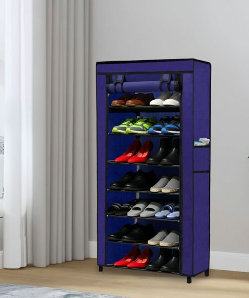 Urban Choice 7 Tier Shoe Rack with Dustproof Cover – Space Saving Footwear Organizer for Entryway, Bedroom & Closet (Blue)