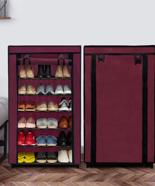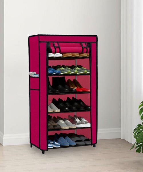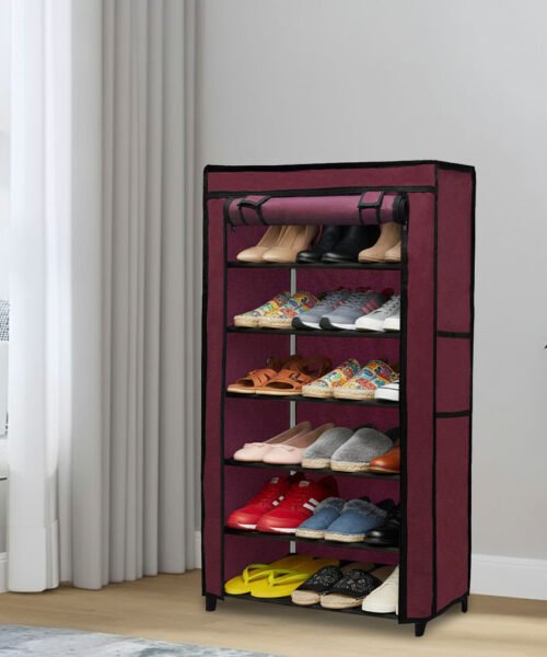 Urban Choice 6 Tier Shoe Rack with Dustproof Cover – Space Saving Footwear Organizer for Entryway, Bedroom & Closet (Maroon)