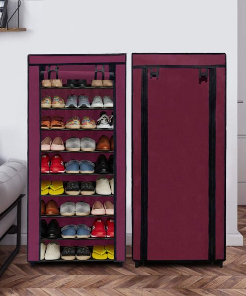 Urban Choice 9 Tier Shoe Rack with Dustproof Cover – Space Saving Footwear Organizer for Entryway, Bedroom & Closet (Maroon)
