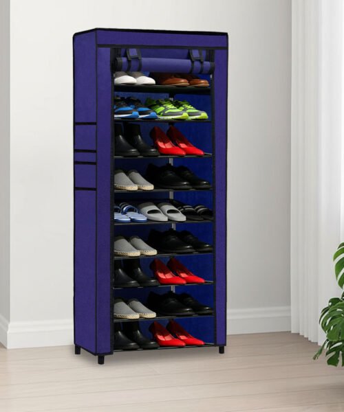 Urban Choice 9 Tier Shoe Rack with Dustproof Cover – Space Saving Footwear Organizer for Entryway, Bedroom & Closet (Blue)