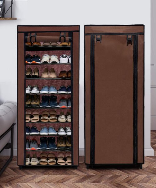 Urban Choice 9 Tier Shoe Rack with Dustproof Cover – Space Saving Footwear Organizer for Entryway, Bedroom & Closet (Brown)