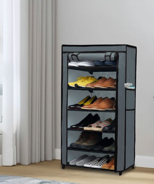 Urban Choice 6 Tier Shoe Rack with Dustproof Cover – Space Saving Footwear Organizer for Entryway, Bedroom & Closet (Grey)
