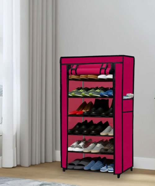 Urban Choice 6 Tier Shoe Rack with Dustproof Cover – Space Saving Footwear Organizer for Entryway, Bedroom & Closet (Pink)