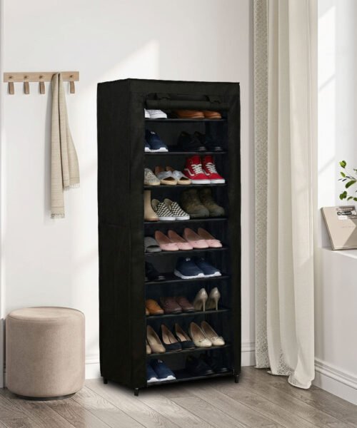 Urban Choice 9 Tier Shoe Rack with Dustproof Cover – Space Saving Footwear Organizer for Entryway, Bedroom & Closet (Black)