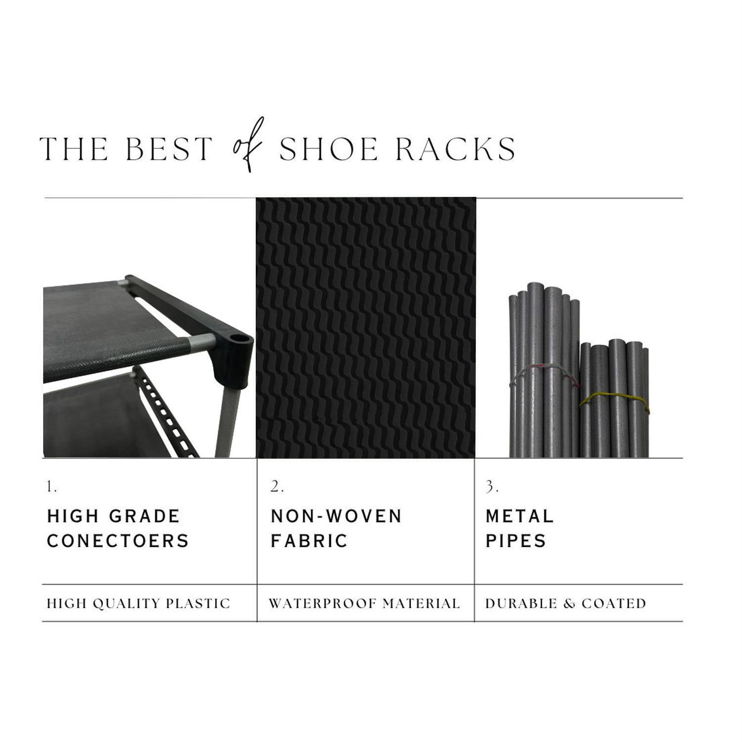 The embossed tray surface adds a refined decorative touch while also providing improved grip for footwear placement. Proper spacing between shelves promotes ventilation, helping maintain freshness and hygienic storage conditions even during humid weather. Its modern black tone blends seamlessly with contemporary home décor, wardrobe areas, entryways, balconies, or dressing spaces.