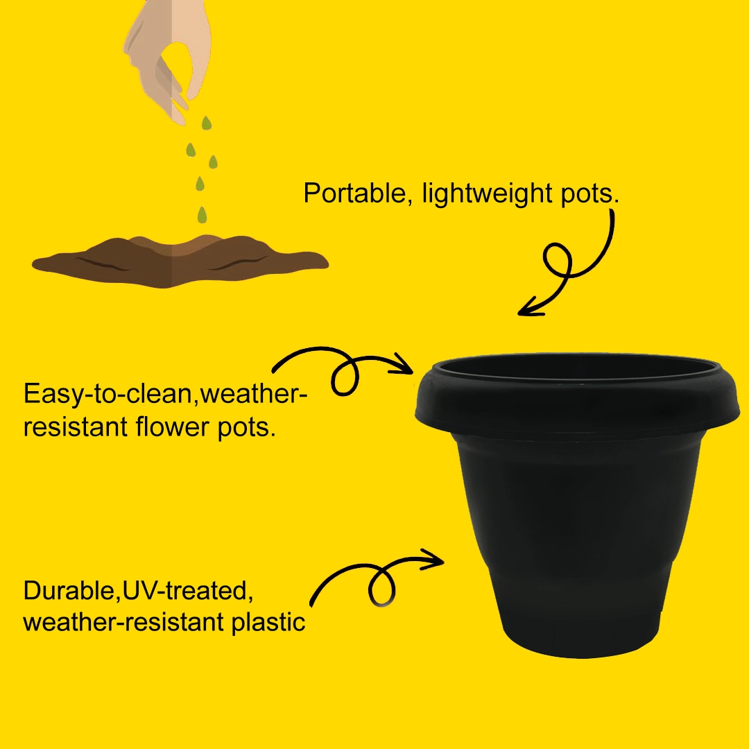 Made from high-quality, weather-resistant plastic, these flower pots are built to withstand sunlight, rain, and daily wear, making them ideal for both indoor and outdoor use. Their lightweight yet sturdy construction allows easy handling and repositioning, while the smooth finish adds a neat and elegant look to any space.