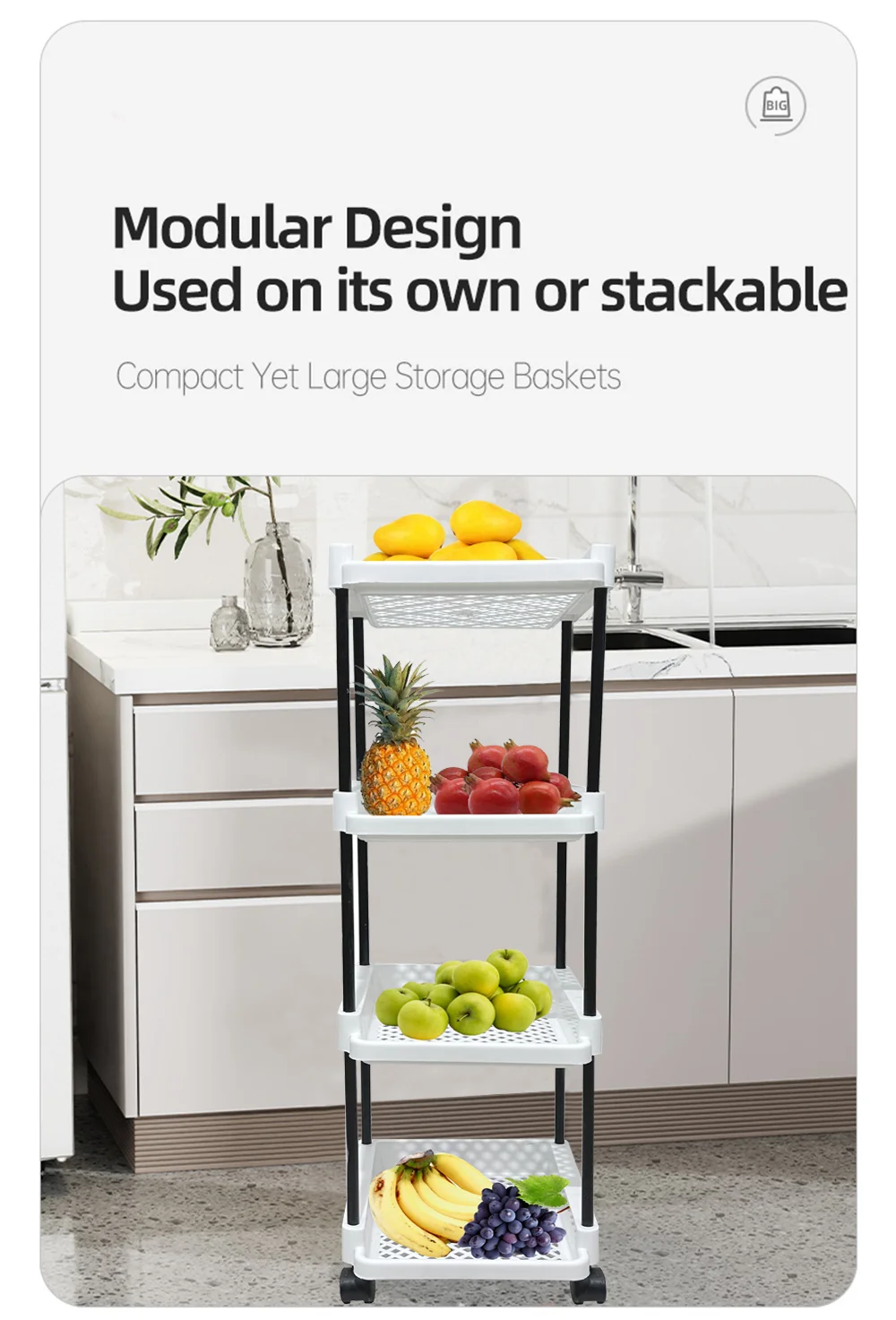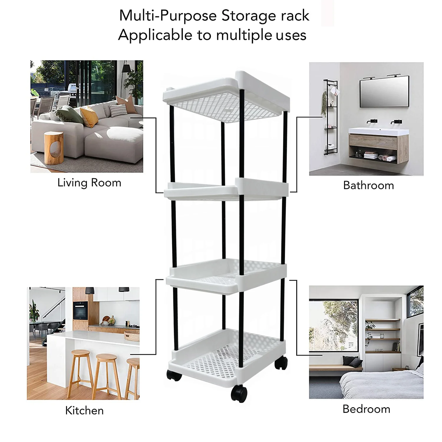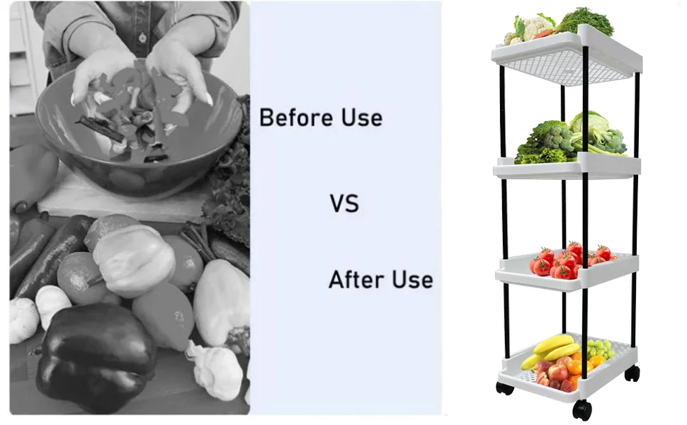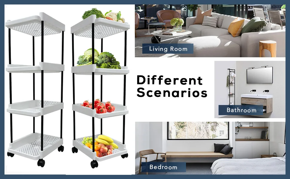 The multi-layer design provides ample space to organize vegetables, fruits, kitchen essentials, toiletries, cleaning supplies, stationery, or daily-use items. Its compact vertical structure helps maximize storage while saving floor space.