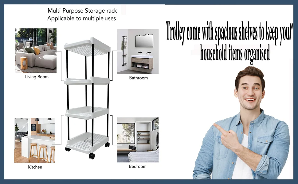 Crafted from high-quality, durable plastic, the trolley features a ventilated jaali design that allows proper air circulation, keeping stored items fresh and odor-free. The smooth-rolling wheels ensure easy movement, making it convenient to shift between rooms as needed.