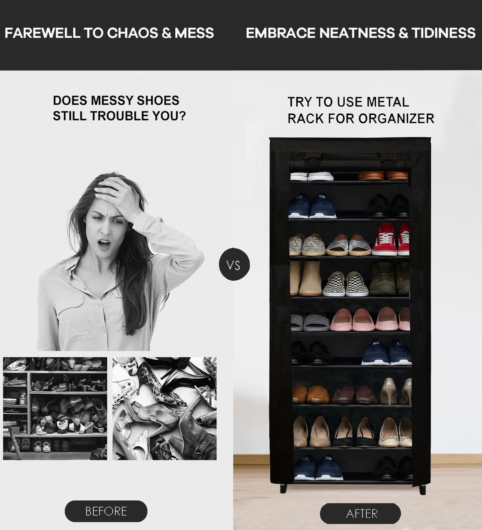 2 reviews for Urban Choice 12 Tier Shoe Rack with Dustproof Cover – Space Saving Footwear Organizer for Entryway, Bedroom & Closet (Black)