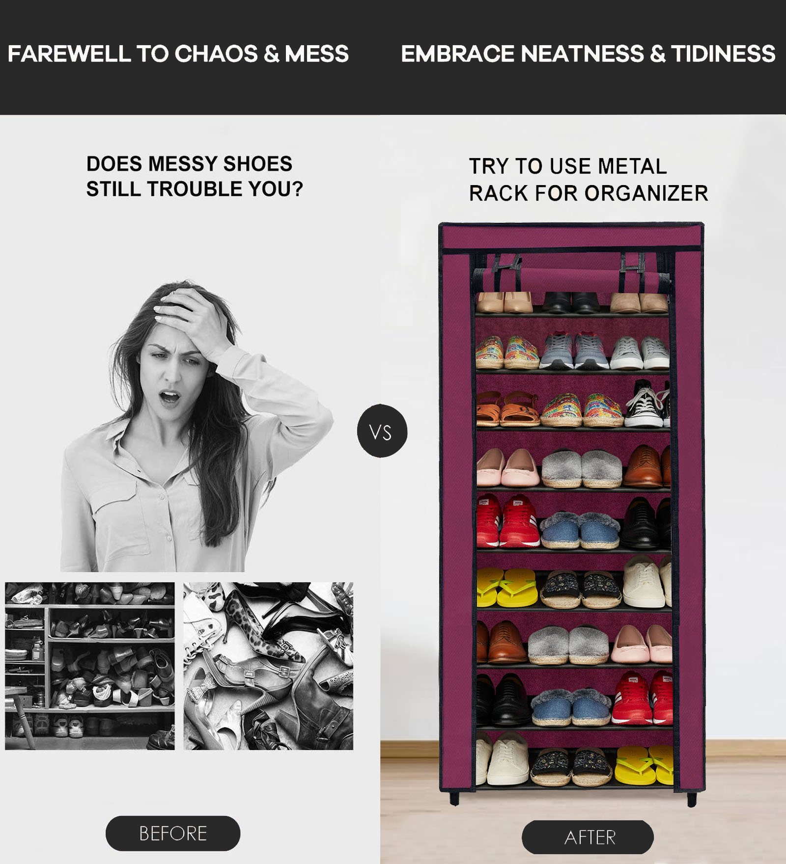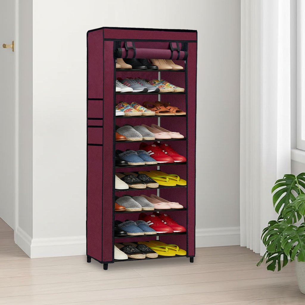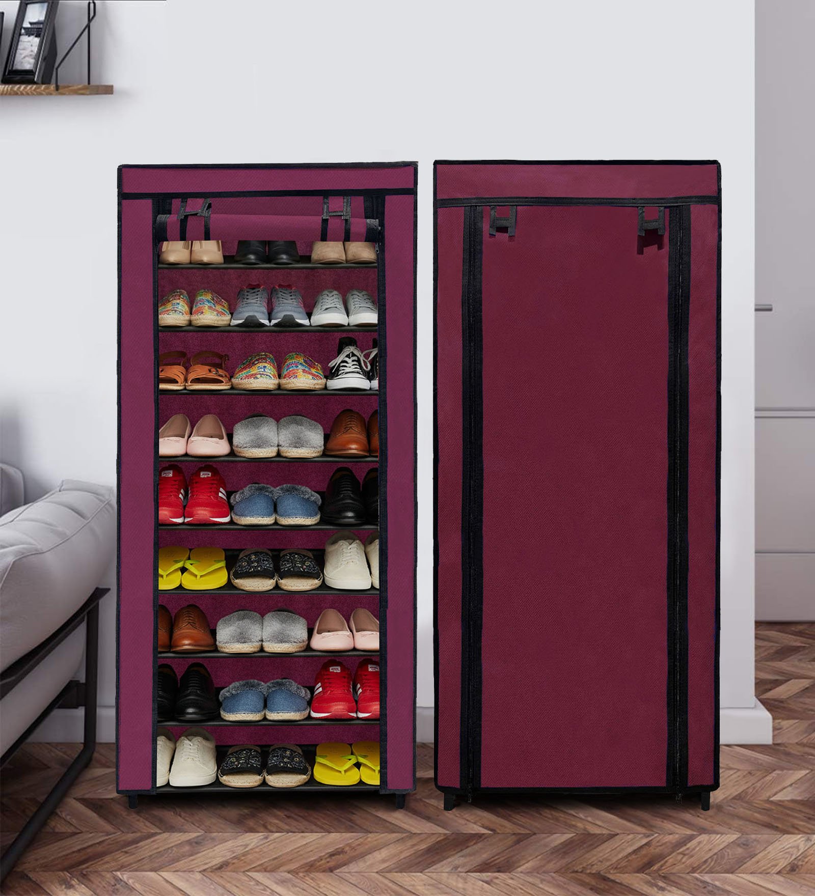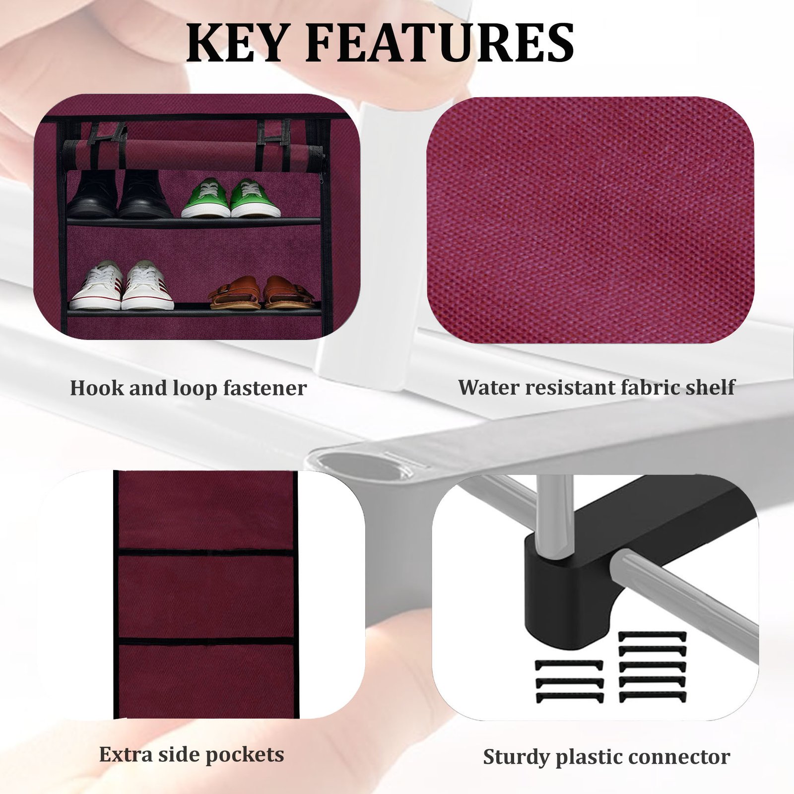 Urban Choice 12 Tier Shoe Rack with Dustproof Cover – Space Saving Footwear Organizer for Entryway, Bedroom & Closet (Maroon)