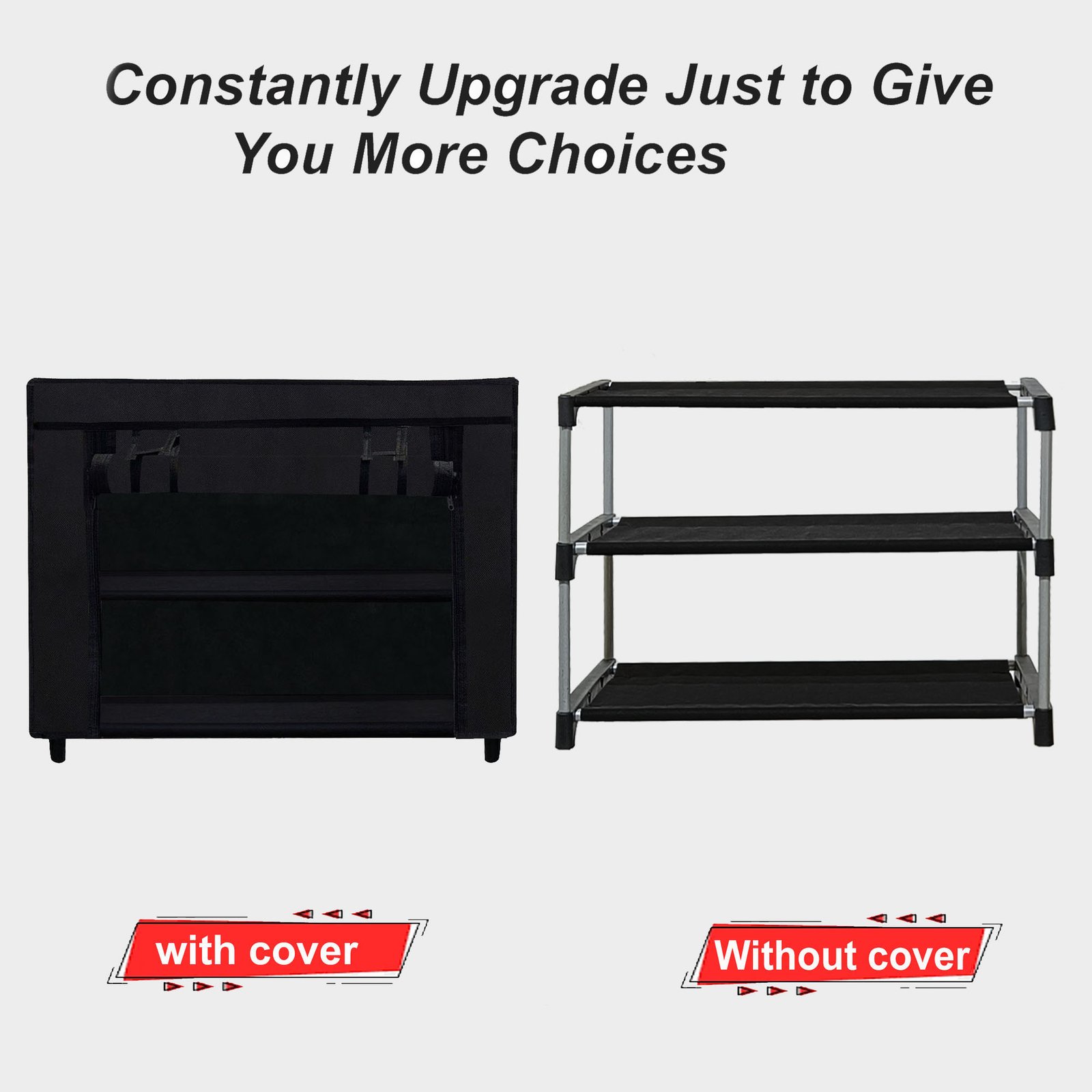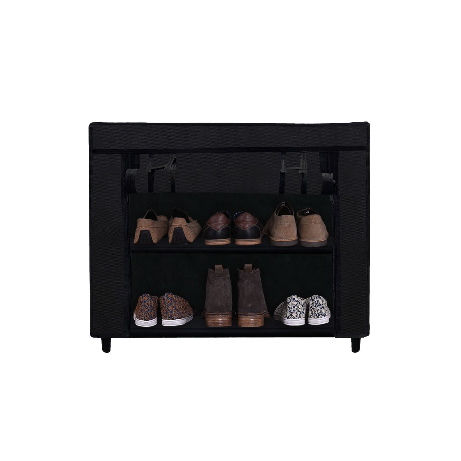 Beneath the stylish Black fabric cover lies a robust and highly sturdy metal pipe structure. Stability and structural integrity are paramount when it comes to furniture that holds multiple items. That is why the Urban Choice 2 tier shoe rack is constructed using heavy-duty, corrosion-resistant metal pipes that are designed to withstand daily wear and tear. These metal pipes are firmly connected by reinforced, thickened plastic connectors that ensure the entire shoe stand remains stable, even when fully loaded with heavy shoes or boots. You will not have to worry about wobbling or collapsing; this shoe rack is built to last for years, providing reliable support for all your footwear storage needs.