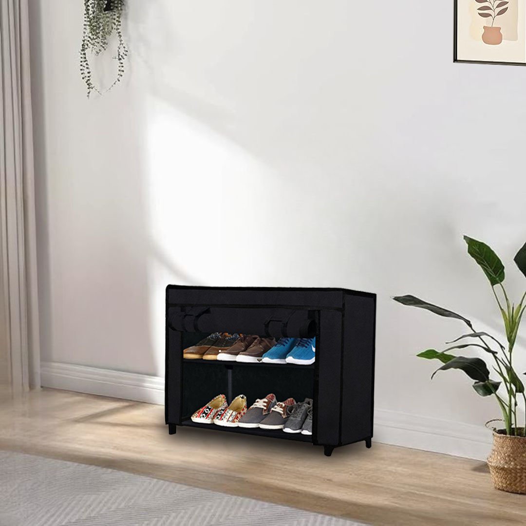 Urban Choice 2 Tier Shoe Rack with Dustproof Cover – Space Saving Footwear Organizer for Entryway, Bedroom & Closet (Black)