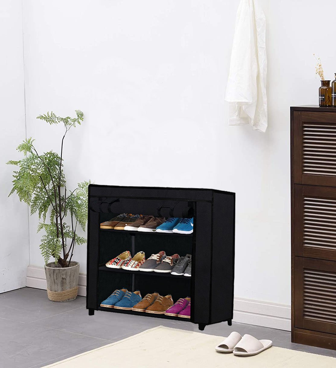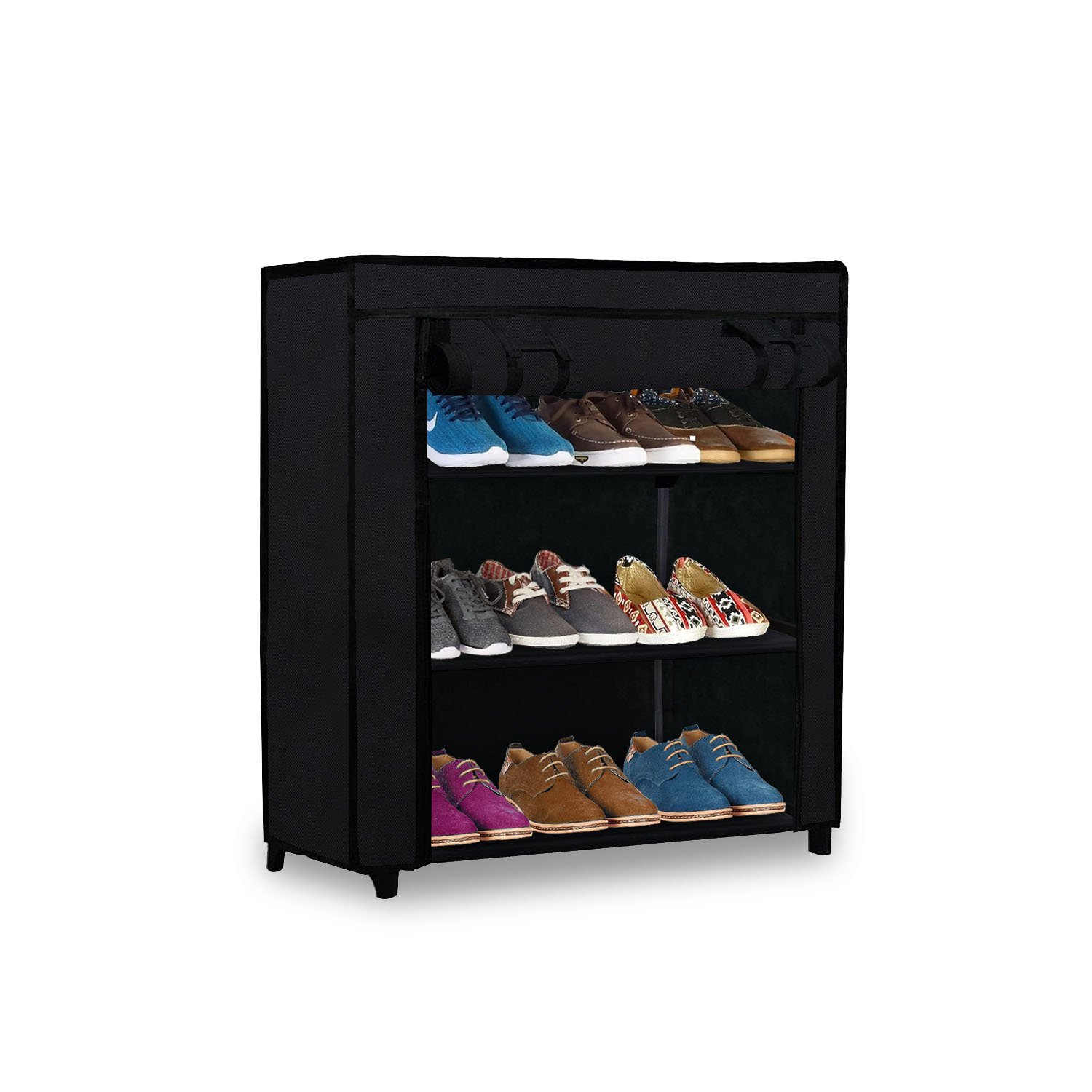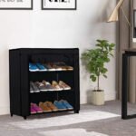 Urban Choice 3 Tier Shoe Rack with Dustproof Cover – Space Saving Footwear Organizer for Entryway, Bedroom & Closet (Black)