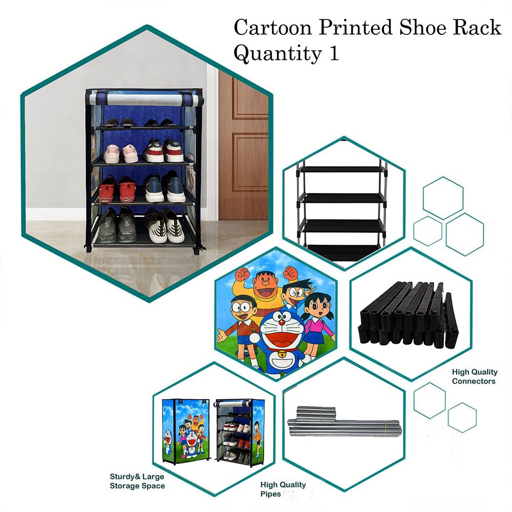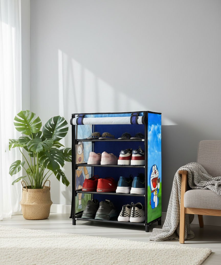 “Make home organization more fun and visually engaging with the Urban Choice 4 Layer Cartoon Printed Shoe Rack in attractive blue finish. Specially designed for modern families and kids-friendly interiors, this printed footwear organizer combines practical storage efficiency with lively character-themed aesthetics. The unique cartoon print design helps transform ordinary storage areas into cheerful and creative spaces, making it ideal for children’s bedrooms, play areas, study rooms, and family entryways.