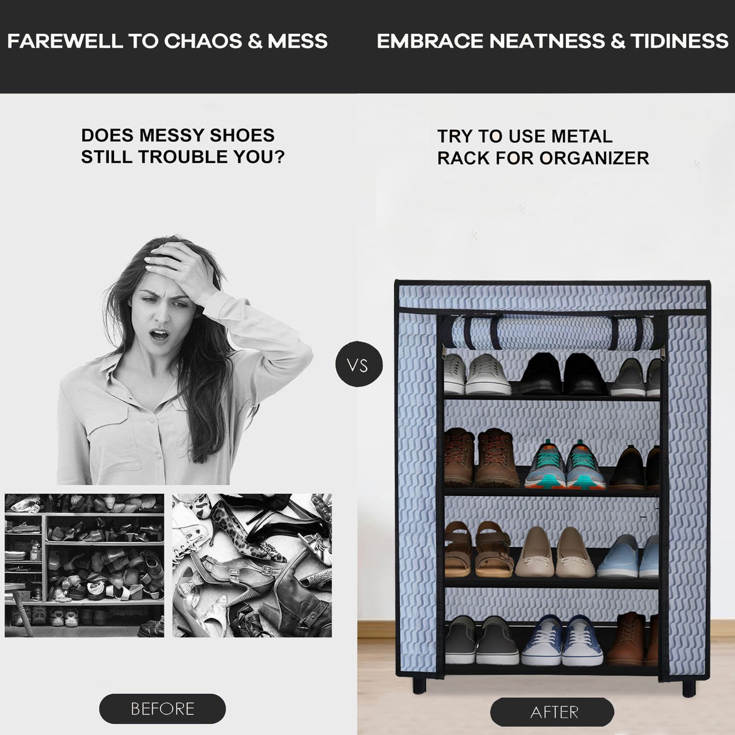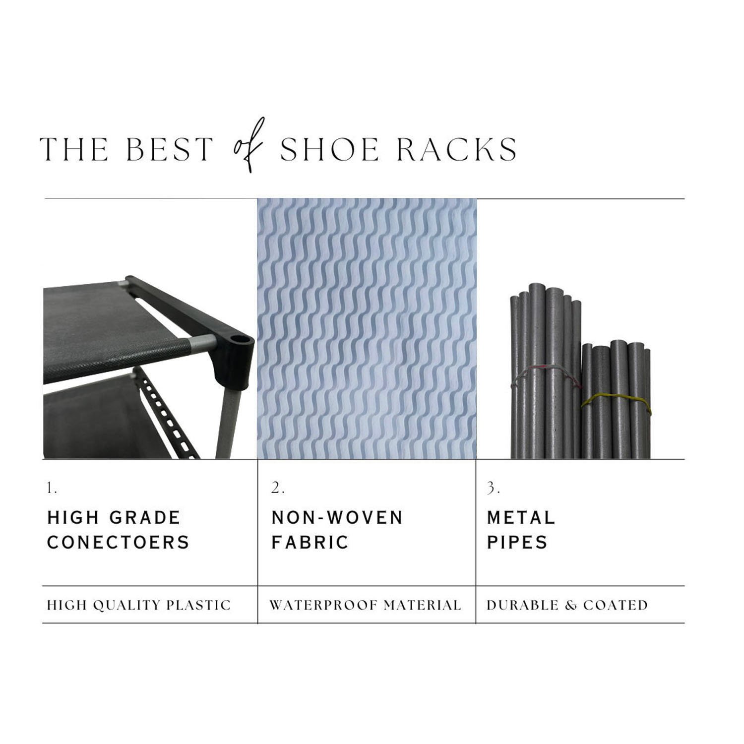 The embossed tray surface adds a refined decorative touch while also providing improved grip for footwear placement. Proper spacing between shelves promotes ventilation, helping maintain freshness and hygienic storage conditions even during humid weather. Its modern black tone blends seamlessly with contemporary home décor, wardrobe areas, entryways, balconies, or dressing spaces.
