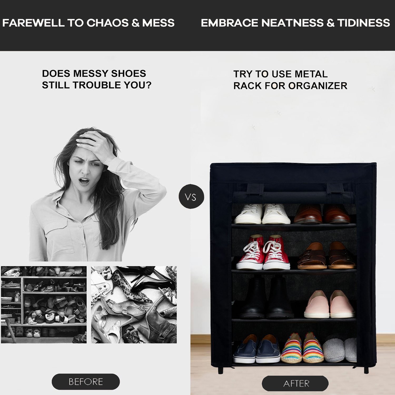 Beyond just shoes, this versatile storage rack can be repurposed to store other household items such as folded clothes, towels, accessories, bags, and toys, making it a multi-functional addition to your home. Its sleek and modern design seamlessly complements any interior decor style, adding a touch of sophistication to your living space. By keeping your footwear neatly arranged, you not only protect your shoes from damage but also save valuable time during your busy morning routines. You will no longer have to frantically search for a matching pair of shoes; everything will be perfectly organized and right where you need it.