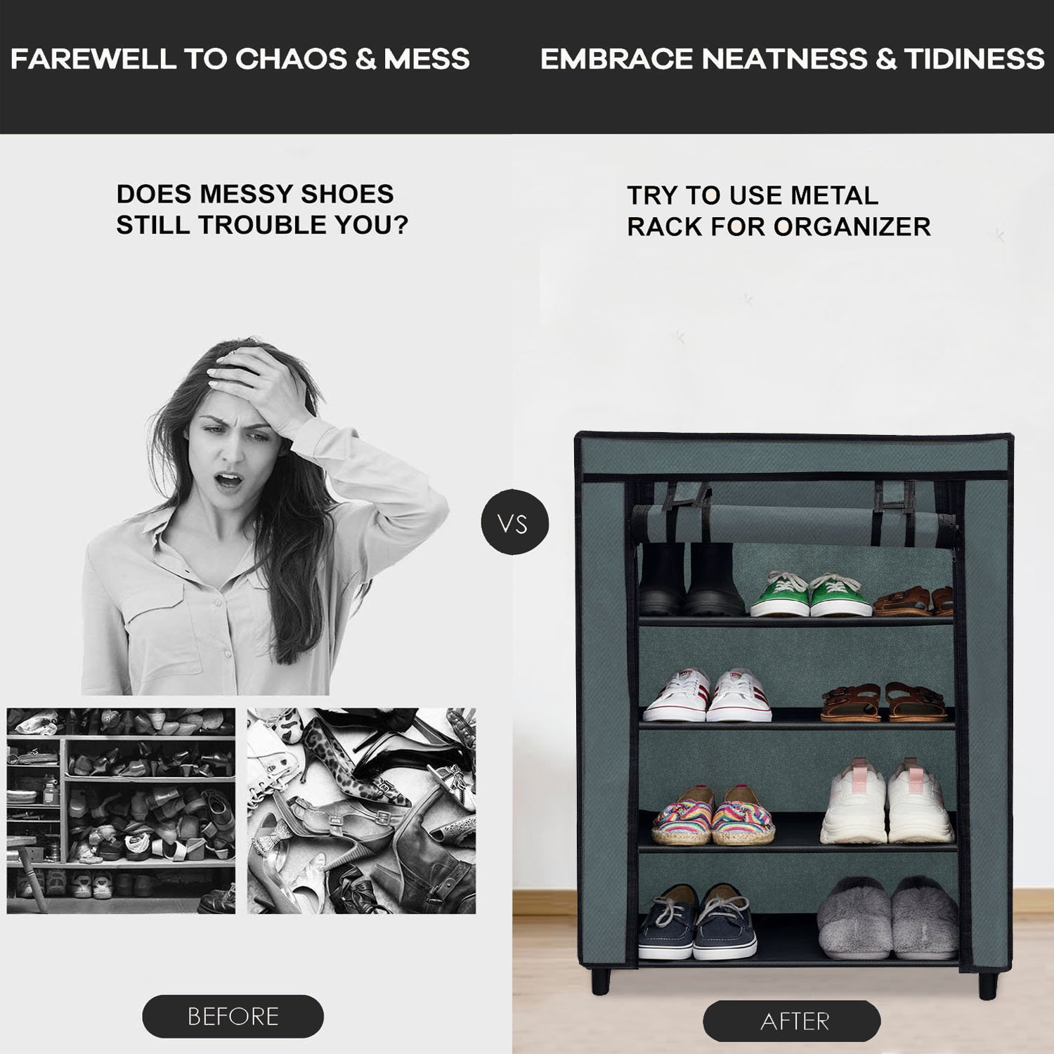 Beyond just shoes, this versatile storage rack can be repurposed to store other household items such as folded clothes, towels, accessories, bags, and toys, making it a multi-functional addition to your home. Its sleek and modern design seamlessly complements any interior decor style, adding a touch of sophistication to your living space. By keeping your footwear neatly arranged, you not only protect your shoes from damage but also save valuable time during your busy morning routines. You will no longer have to frantically search for a matching pair of shoes; everything will be perfectly organized and right where you need it.