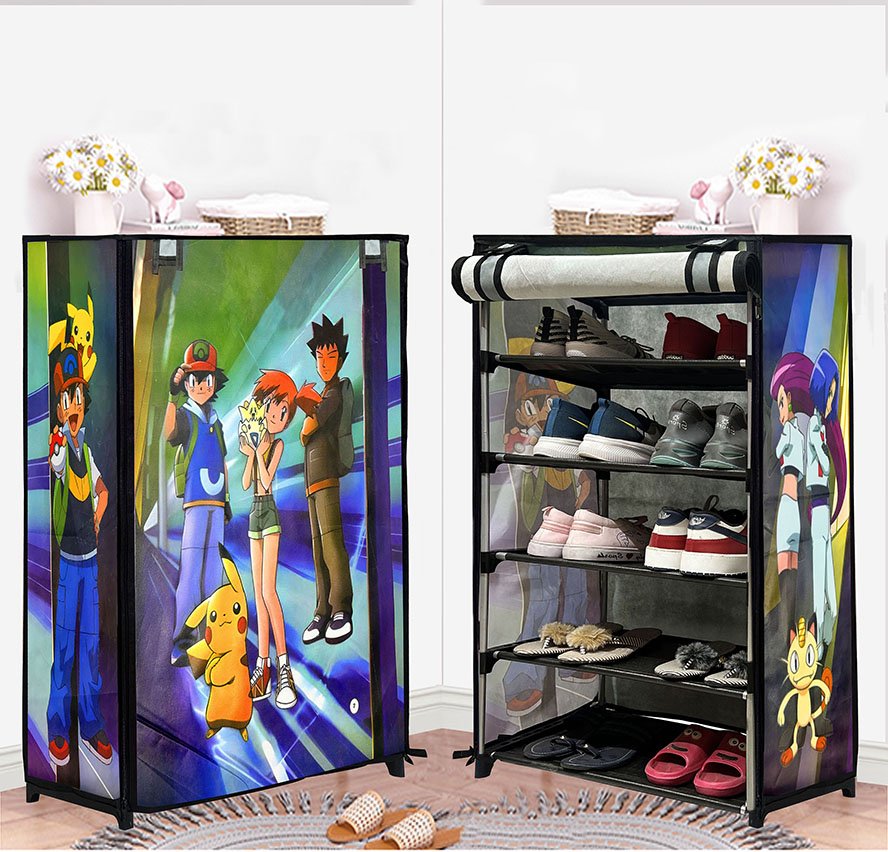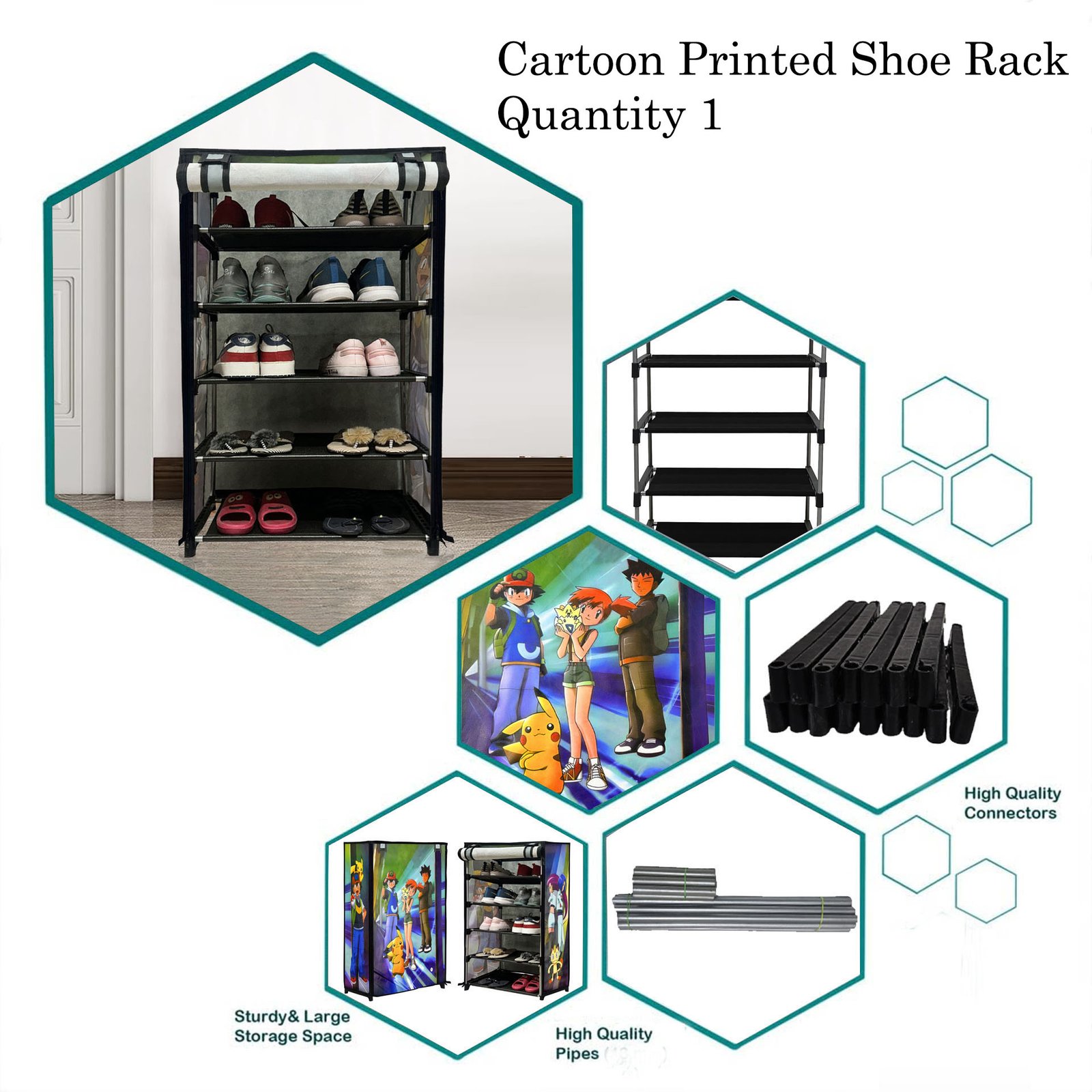 Urban Choice 5 Layer POKEMON Cartoon Printed Shoe Rack Grey – Kids Friendly Space Saving Footwear Organizer