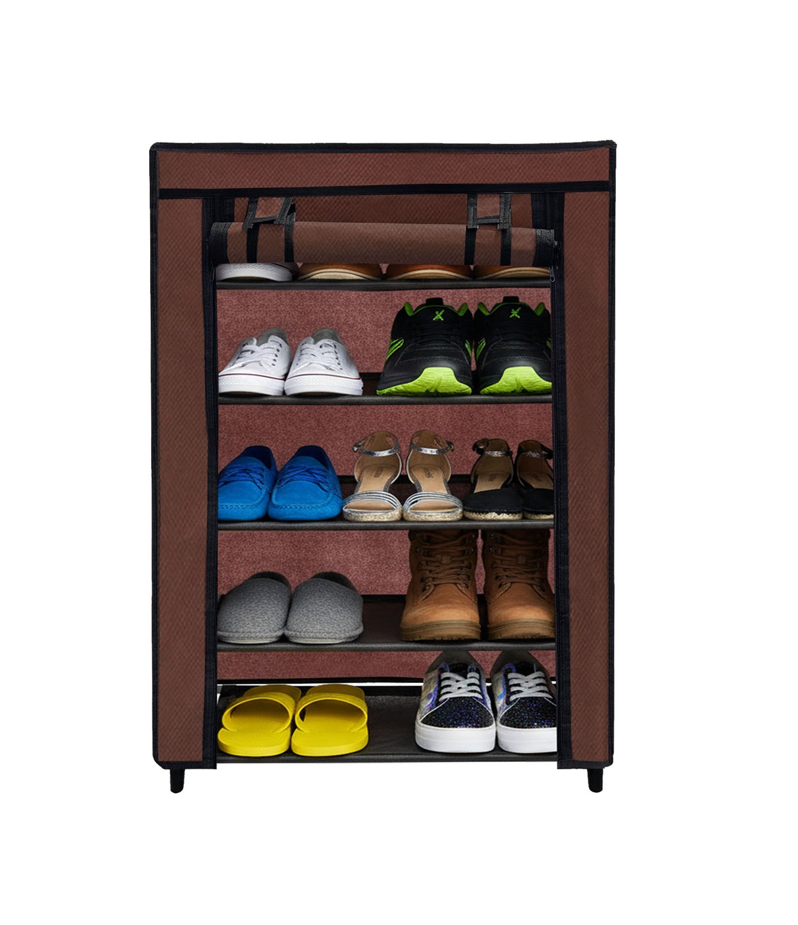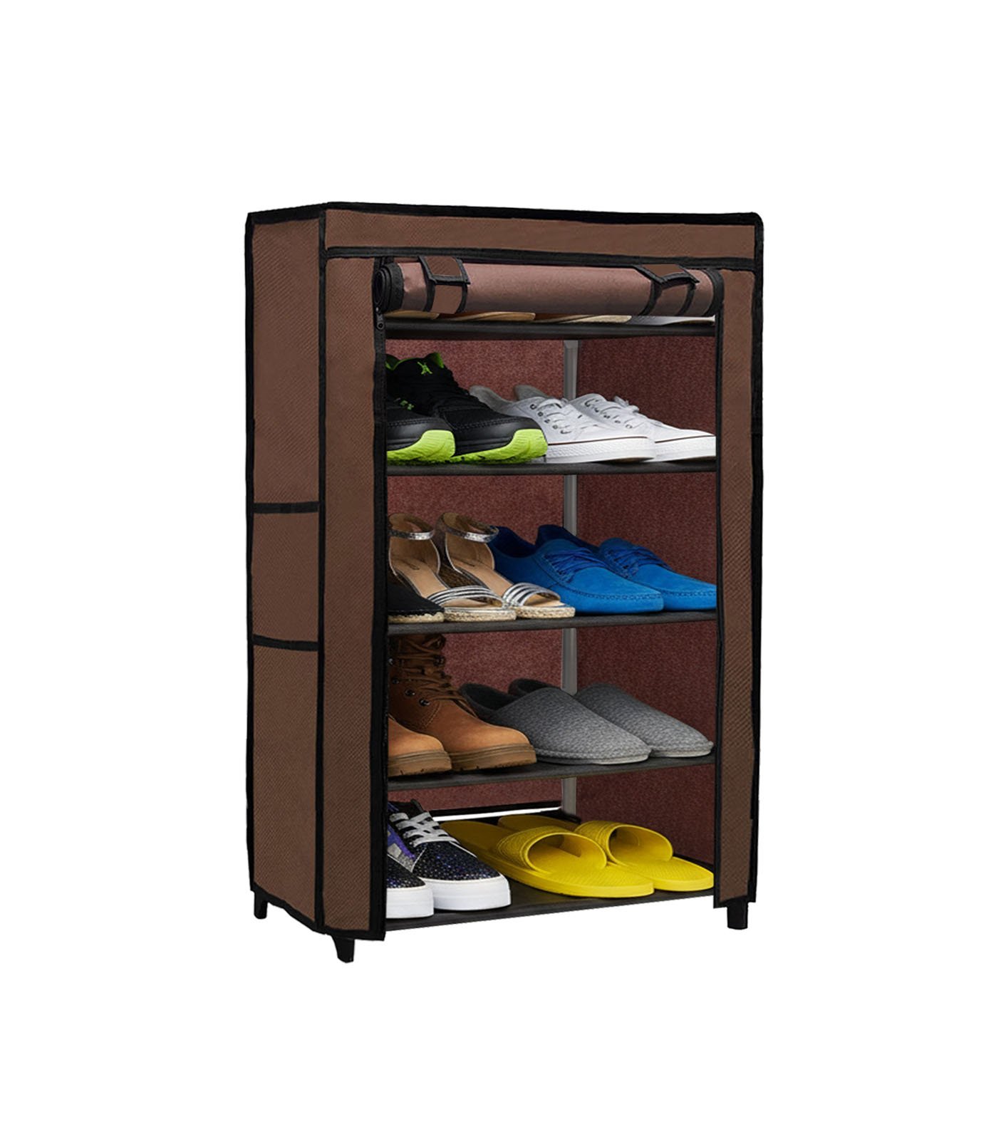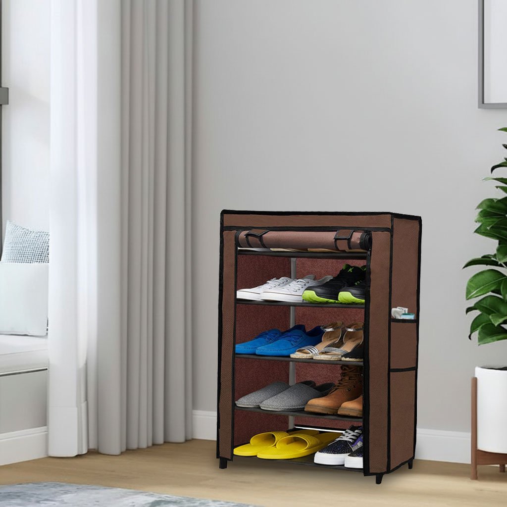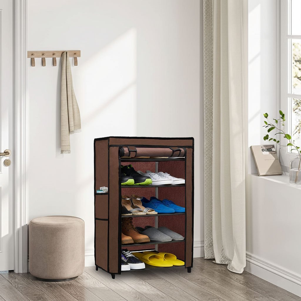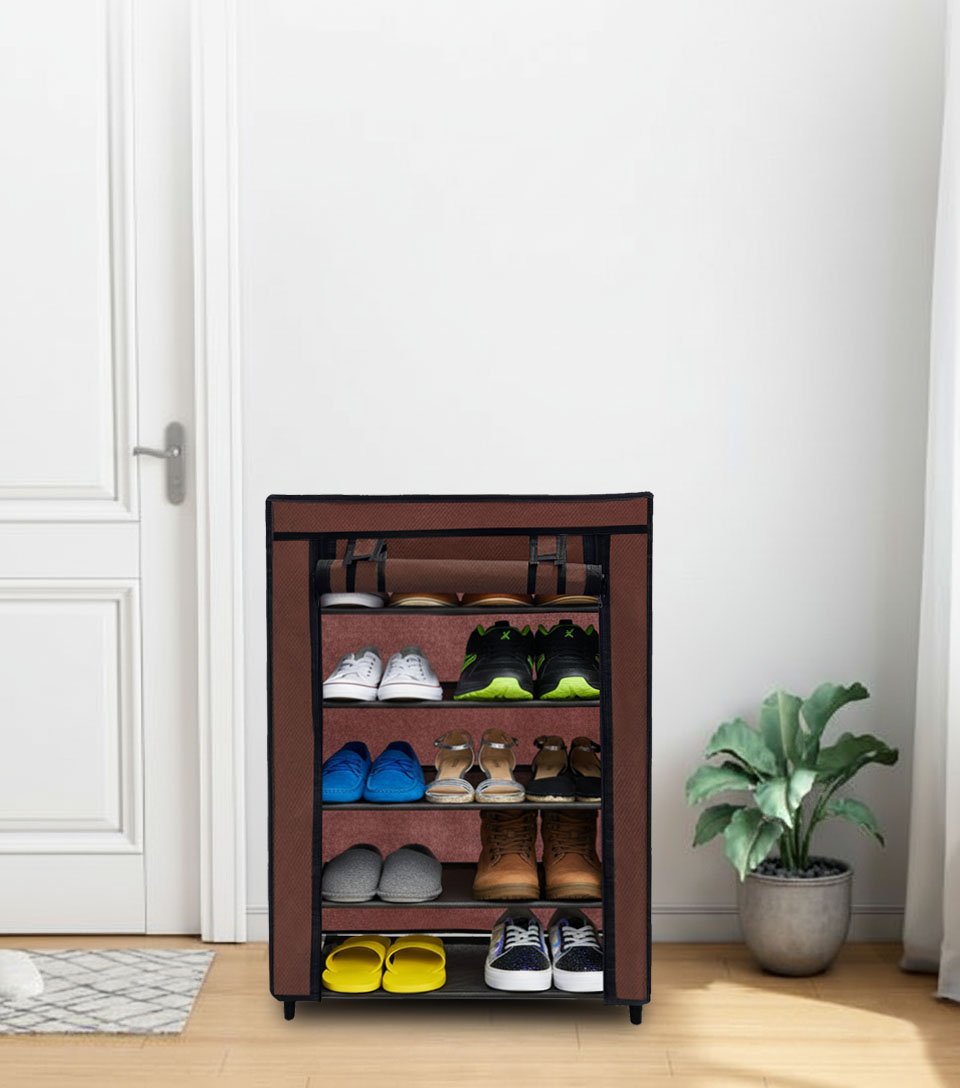 Urban Choice 5 Tier Shoe Rack with Dustproof Cover – Space Saving Footwear Organizer for Entryway, Bedroom & Closet (Brown)