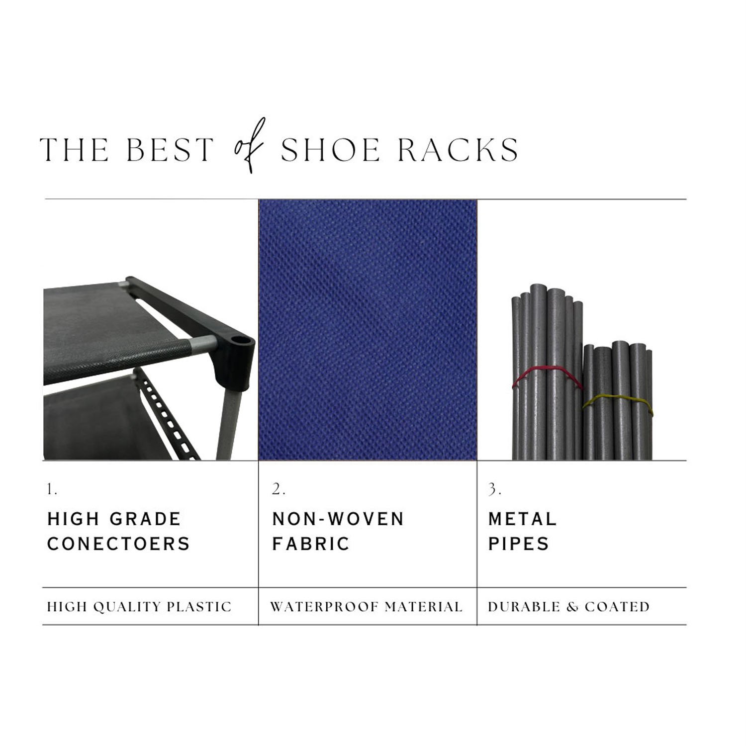 Beneath the stylish Black fabric cover lies a robust and highly sturdy metal pipe structure. Stability and structural integrity are paramount when it comes to furniture that holds multiple items. That is why the Urban Choice 5 tier shoe rack is constructed using heavy-duty, corrosion-resistant metal pipes that are designed to withstand daily wear and tear. These metal pipes are firmly connected by reinforced, thickened plastic connectors that ensure the entire shoe stand remains stable, even when fully loaded with heavy shoes or boots. You will not have to worry about wobbling or collapsing; this shoe rack is built to last for years, providing reliable support for all your footwear storage needs.