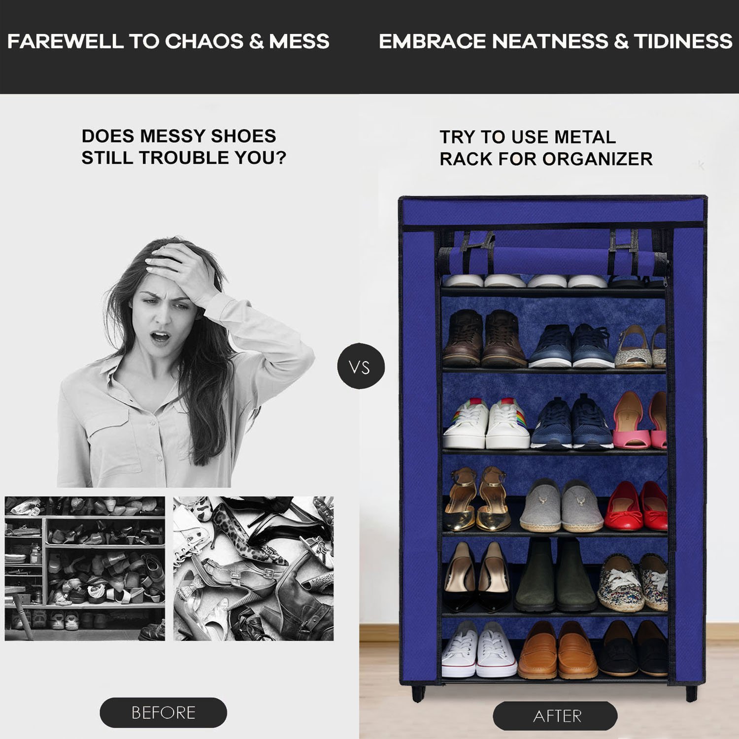 Elevate your home organization game today with the Urban Choice 6 Tier Shoe Rack. Experience the perfect combination of a sturdy metal frame, a protective dustproof cover, and a highly efficient space-saving design. Say goodbye to messy floors and hello to a clean, serene, and beautifully organized living environment. Make the smart choice for your home and enjoy the peace of mind that comes with knowing your footwear is stored safely, securely, and stylishly.”