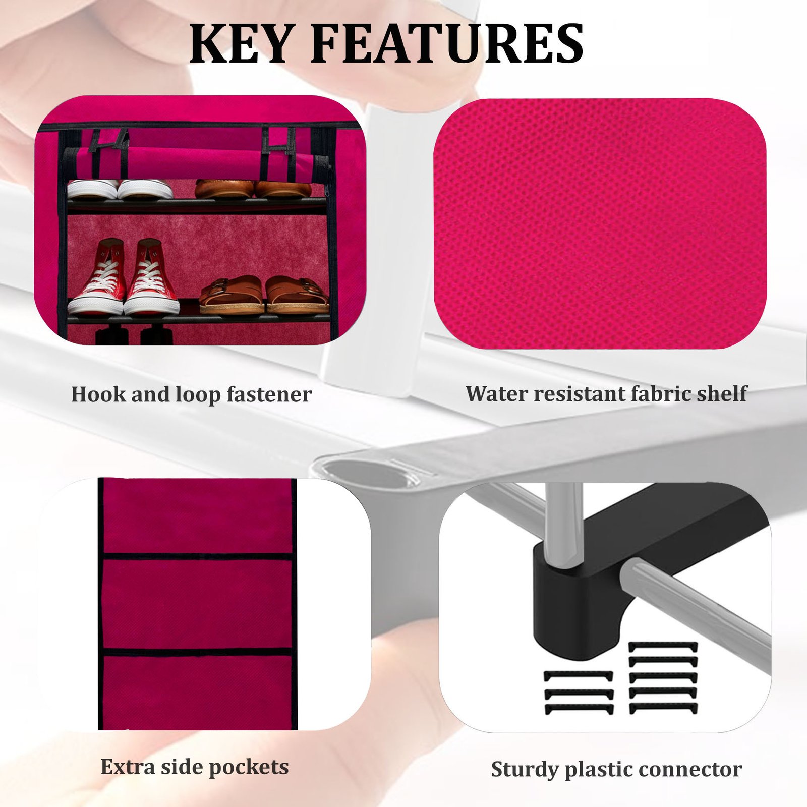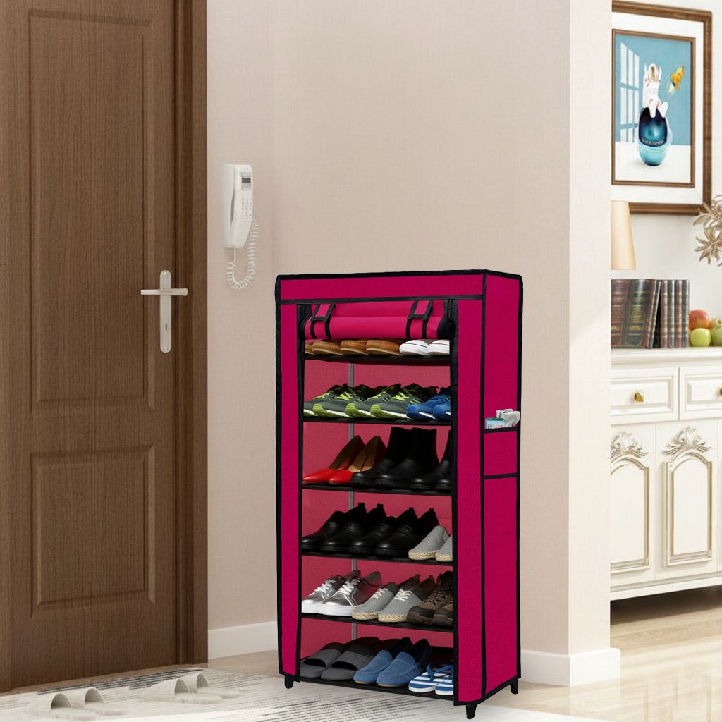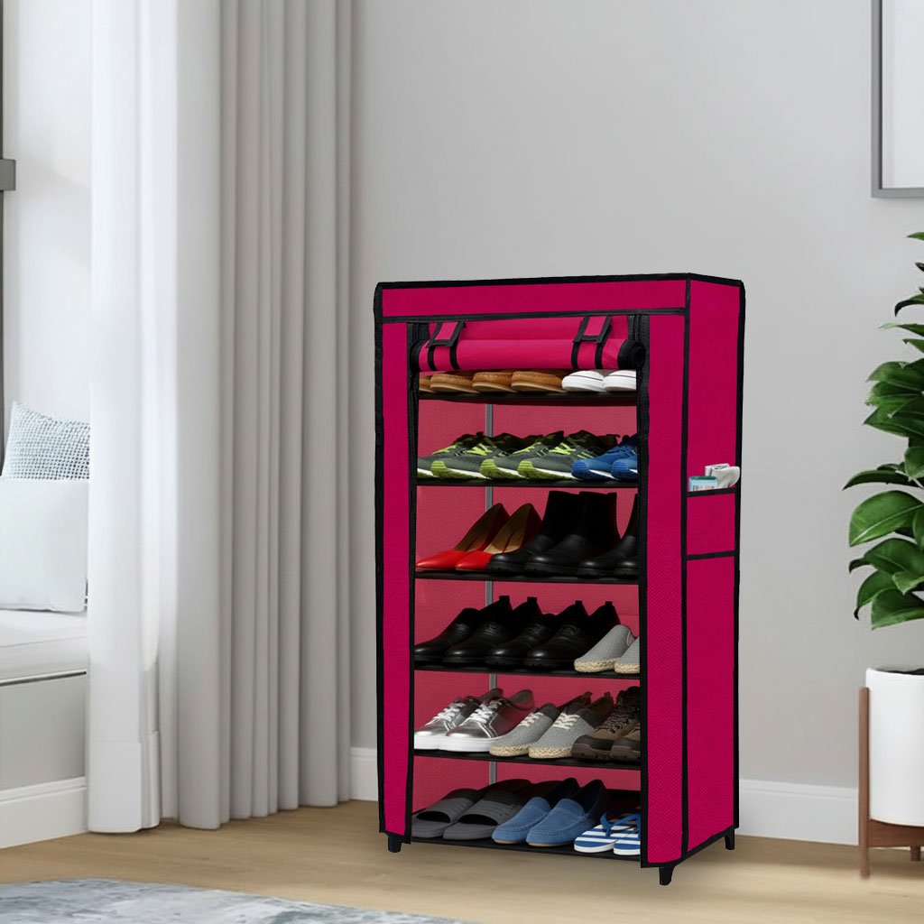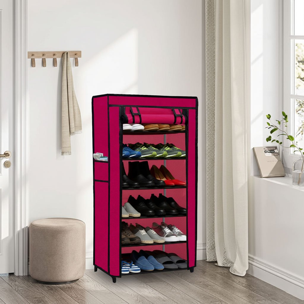 Beneath the stylish Pink fabric cover lies a robust and highly sturdy metal pipe structure. Stability and structural integrity are paramount when it comes to furniture that holds multiple items. That is why the Urban Choice 6 tier shoe rack is constructed using heavy-duty, corrosion-resistant metal pipes that are designed to withstand daily wear and tear. These metal pipes are firmly connected by reinforced, thickened plastic connectors that ensure the entire shoe stand remains stable, even when fully loaded with heavy shoes or boots. You will not have to worry about wobbling or collapsing; this shoe rack is built to last for years, providing reliable support for all your footwear storage needs.