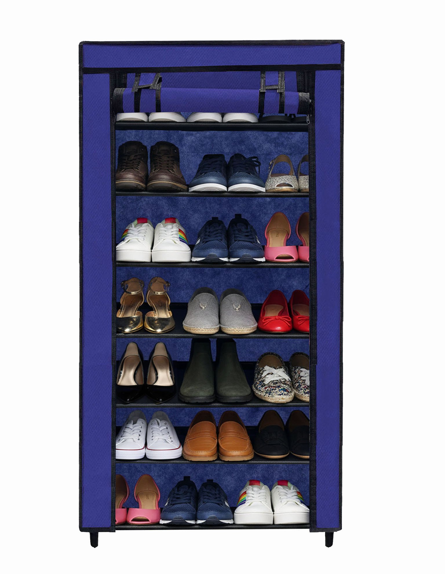 Beneath the stylish Blue fabric cover lies a robust and highly sturdy metal pipe structure. Stability and structural integrity are paramount when it comes to furniture that holds multiple items. That is why the Urban Choice 7 tier shoe rack is constructed using heavy-duty, corrosion-resistant metal pipes that are designed to withstand daily wear and tear. These metal pipes are firmly connected by reinforced, thickened plastic connectors that ensure the entire shoe stand remains stable, even when fully loaded with heavy shoes or boots. You will not have to worry about wobbling or collapsing; this shoe rack is built to last for years, providing reliable support for all your footwear storage needs.