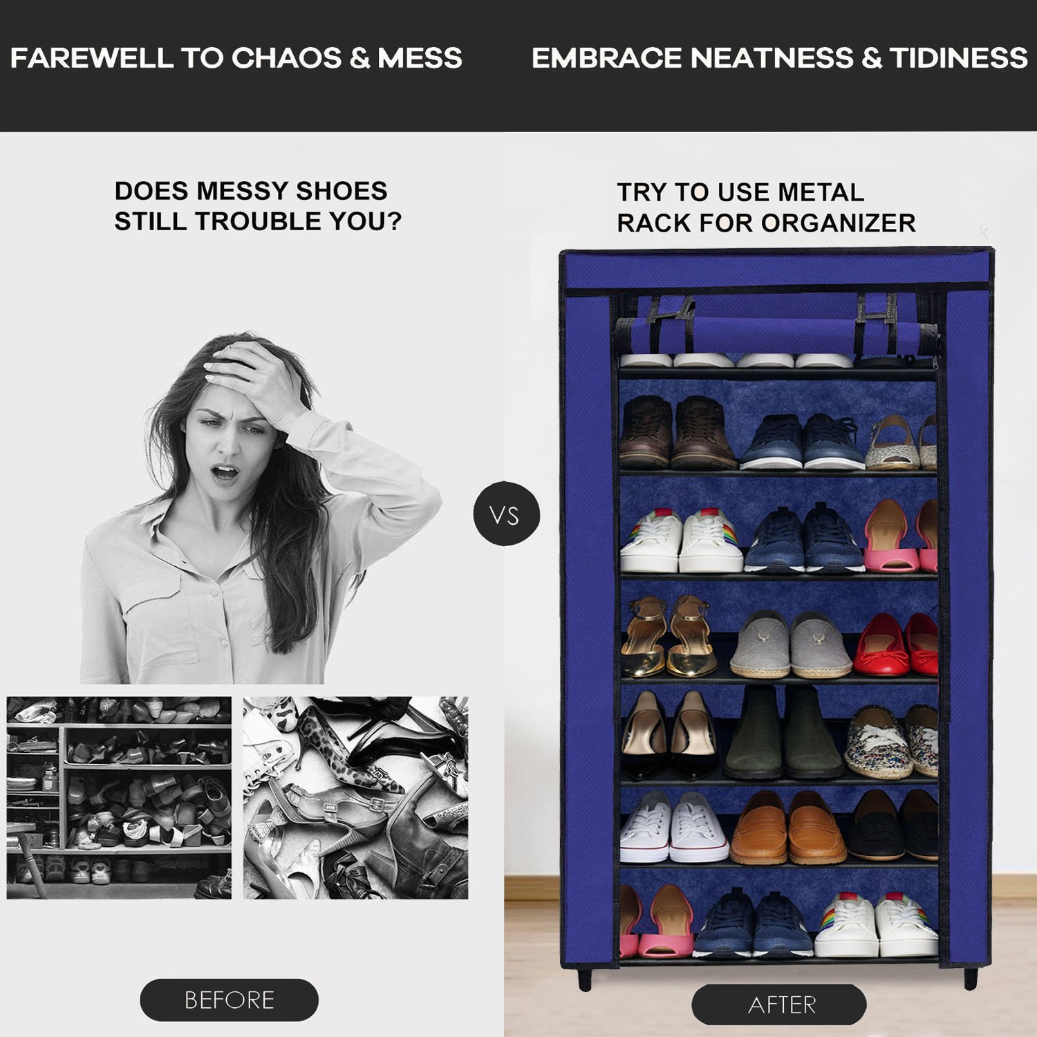 When you choose this high-quality footwear organizer, you are investing in a comprehensive home organization solution. The 7 tier vertical storage design is a game-changer for individuals and families looking to maximize their available floor space. By utilizing vertical height rather than horizontal spread, this shoe cabinet allows you to neatly store multiple pairs of shoes in a highly compact footprint. Whether you live in a spacious house, a cozy apartment, a hostel, or a PG room, this space-saving shoe organizer will fit perfectly into your environment without making the room feel cramped. It is the ultimate storage companion for entryways, bedrooms, closets, wardrobes, and hallways.