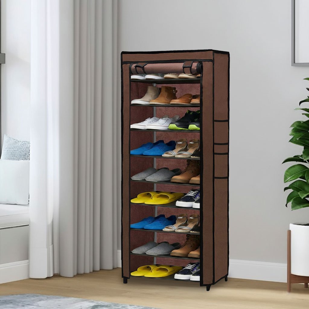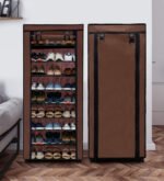 “Transform your living space and bring order to your home with the Urban Choice 9 Tier Shoe Rack with Dustproof Cover in an elegant Brown finish. In today’s fast-paced world, maintaining a clutter-free and organized home can be a daunting task, especially when it comes to managing the footwear of your entire family. Shoes, slippers, sandals, and boots tend to pile up near the front door, creating an unsightly and disorganized entryway. The Urban Choice 9 Tier Shoe Rack is specifically engineered to solve this common household problem, offering a seamless blend of functionality, durability, and aesthetic appeal.